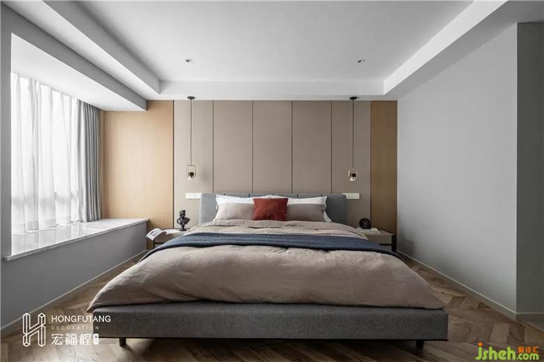 裝修公司選用床頭吊燈搭配點(diǎn)位燈,滿足日常使用燈光,無主燈設(shè)計使得空間更加純粹干凈。