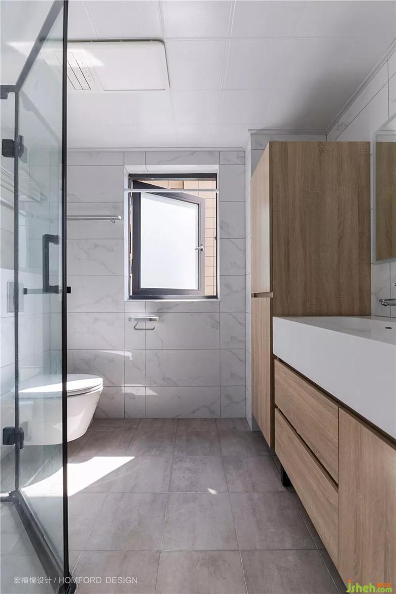 衛(wèi)生間簡潔明亮,在滿足正常使用面積基礎(chǔ)上加大了儲(chǔ)物空間,增強(qiáng)了使用功能性。