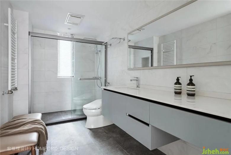 主衛(wèi)延續(xù)了設(shè)計(jì)整體的簡(jiǎn)潔利落,拆分重組后化妝臺(tái)空間得以舒展,營(yíng)造出一種干凈純粹、充滿(mǎn)可探究細(xì)節(jié)的空間感受。