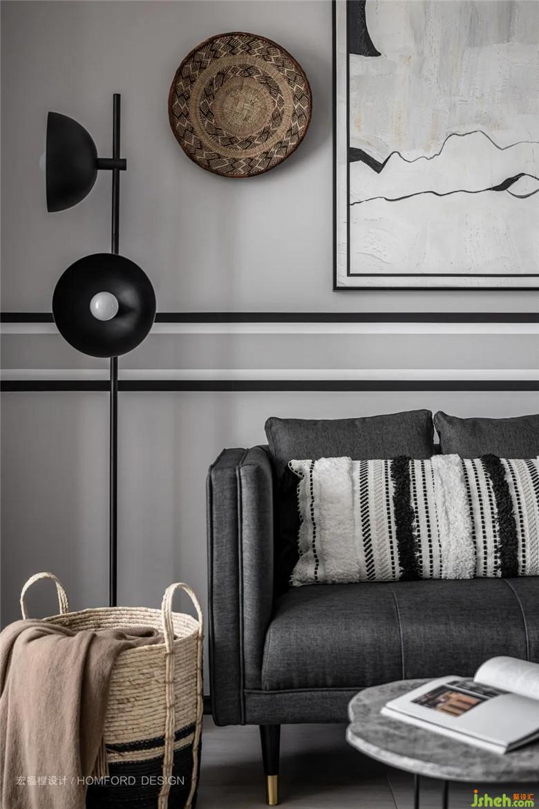 墻面以白、灰為主,紋理自然的灰色瓷磚貫穿整個(gè)空間。純手工拼色腰線以入戶為起點(diǎn),通過(guò)直線牽引出空間動(dòng)線,使空間呈現(xiàn)出層次豐富的動(dòng)態(tài)變化。時(shí)髦的現(xiàn)代氣息中加入沉穩(wěn)的黑白與自然氣韻,營(yíng)造出脫離現(xiàn)實(shí)感的藝術(shù)氛圍。