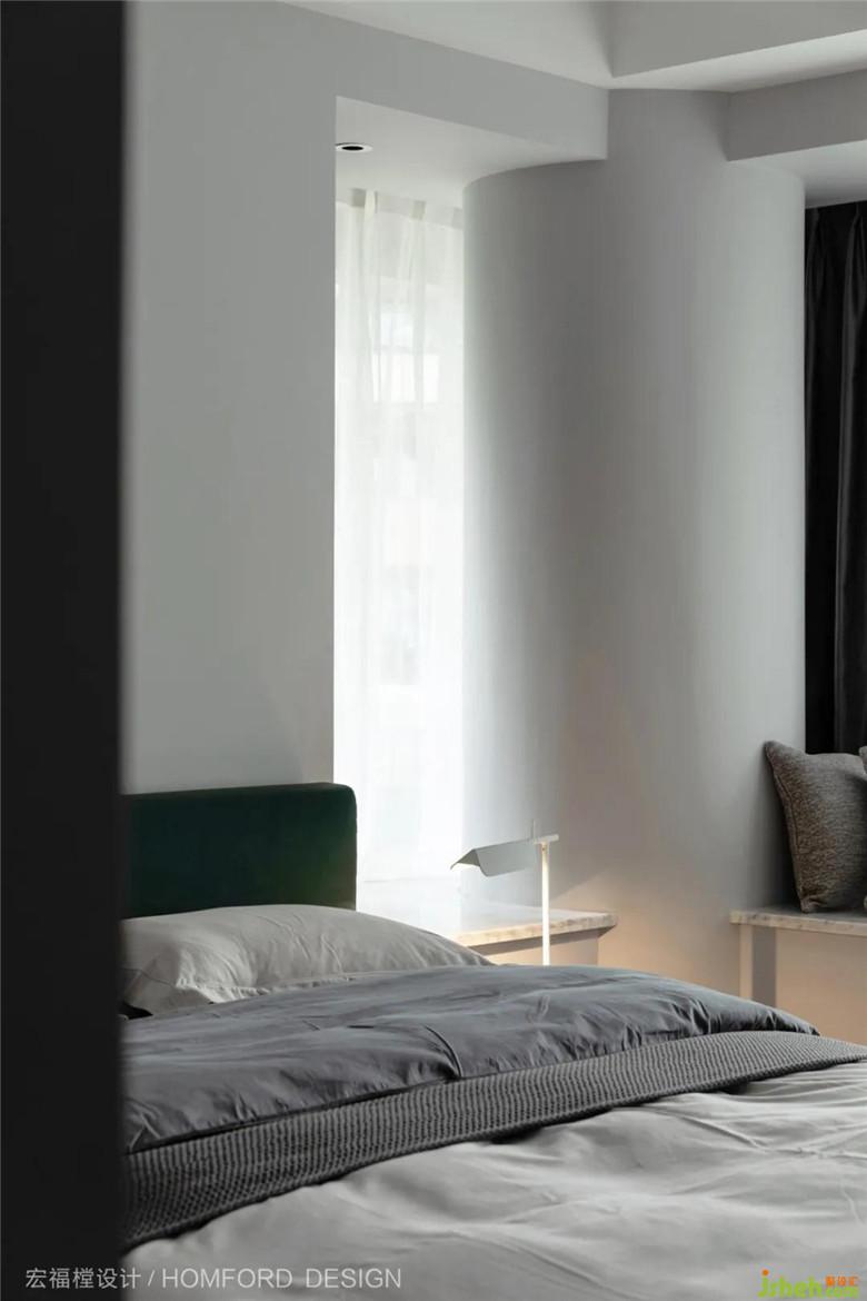 大面積的白與灑進(jìn)屋內(nèi)陽(yáng)光相互融合,墨綠的點(diǎn)綴使之更靜謐更廣闊,讓真實(shí)生活感受成為了銜接空間內(nèi)部與外部自然環(huán)境的設(shè)計(jì)線索。 柔軟的織物,溫暖與自然交替的光線,呈現(xiàn)出一家之主的形象與儀式感。