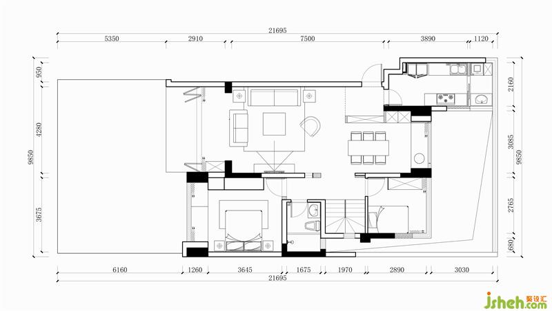 原玄關右側為樓梯,從使用舒適度和美觀性上都顯雞肋。于是我們將正對玄關側方的次衛(wèi)改成了樓梯間入口。無論從訪客還是居住者本人的空間活動路徑來講都更加合理,客餐廳廚房為公區(qū),以樓梯為界,兩側臥房為私區(qū),公私分區(qū)動靜明確。