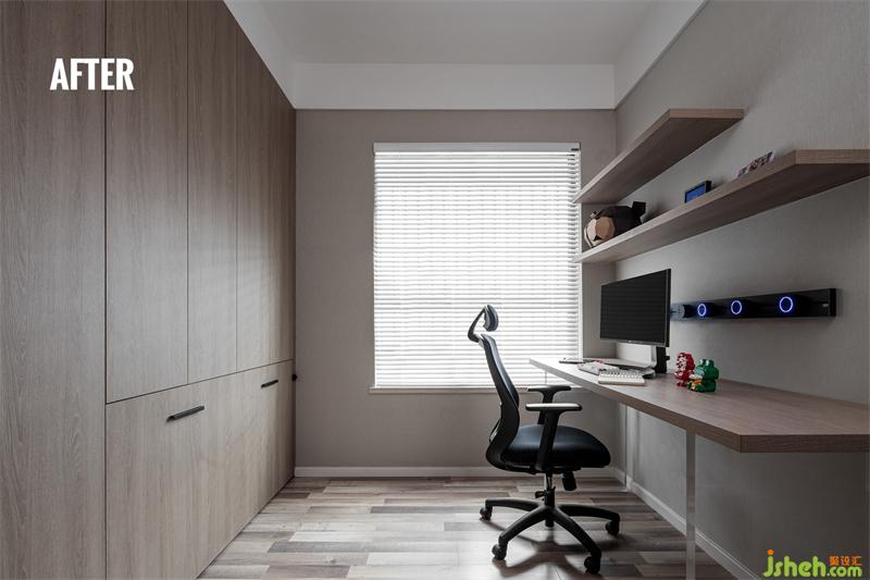 家居裝修利用隱形門將主臥、書房空間與公共區(qū)域隔開,動線變得十分有趣??此埔挥[無遺,卻亦別有洞天。除了居住者本身,第一次來訪的親友,都沒有人能馬上找尋到門的正確位置。