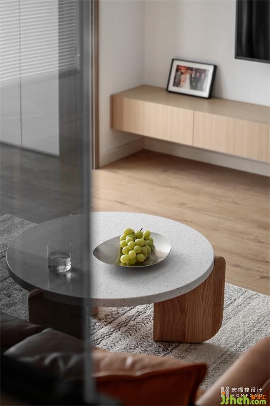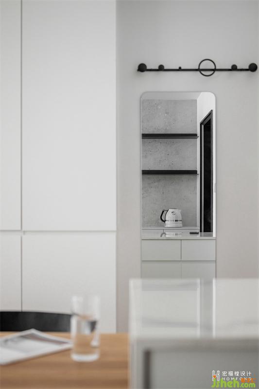 墻面則整體大面積留白去提高空間的明度感,并搭配富有質(zhì)感的原木材質(zhì),在表達(dá)干凈,清爽的同時(shí)不缺乏溫潤(rùn)的氛圍感。