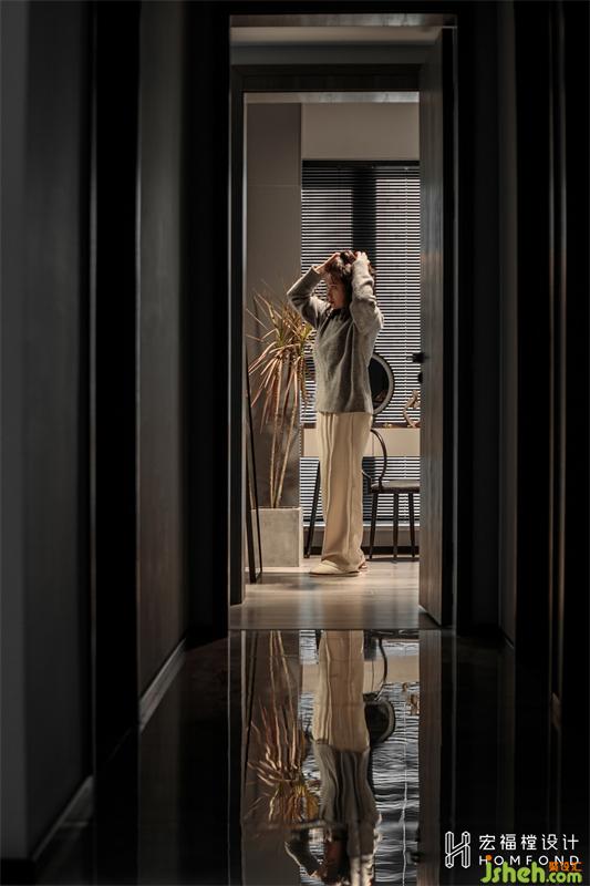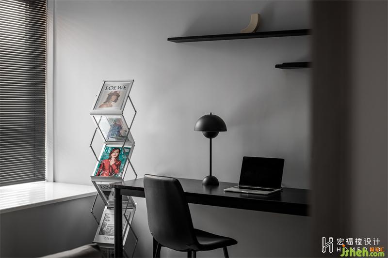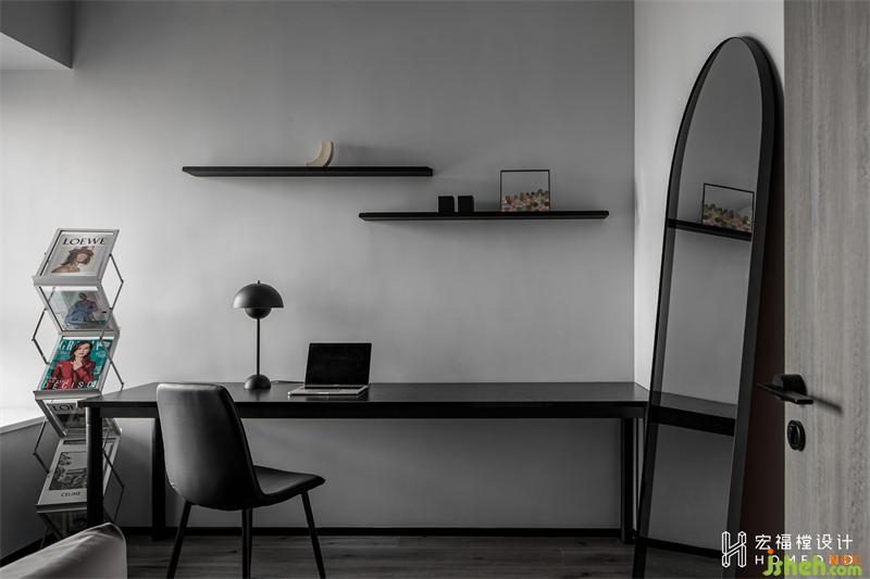 同是設(shè)計(jì)出身的兩位屋主,經(jīng)常會(huì)需要一個(gè)獨(dú)立的思考空間。所以我們盡量簡(jiǎn)化書(shū)房的陳設(shè),以黑色為主,充滿極簡(jiǎn)主義感的同時(shí)營(yíng)造出神秘感,在需要工作時(shí),能更快的進(jìn)入狀態(tài)。