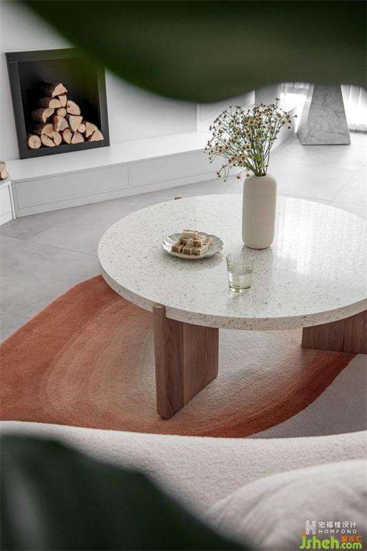 不同于傳統(tǒng)的客廳陳設(shè)形式,沙發(fā)具有圓潤的線條感,立體飽滿,靠客廳邊緣位置斜放,與環(huán)繞客廳的綠植剛好成為一處端景。留出的空間部分恰好與玄關(guān)、餐廳、陽臺(tái)動(dòng)線形成有趣靈活的互動(dòng)關(guān)系。