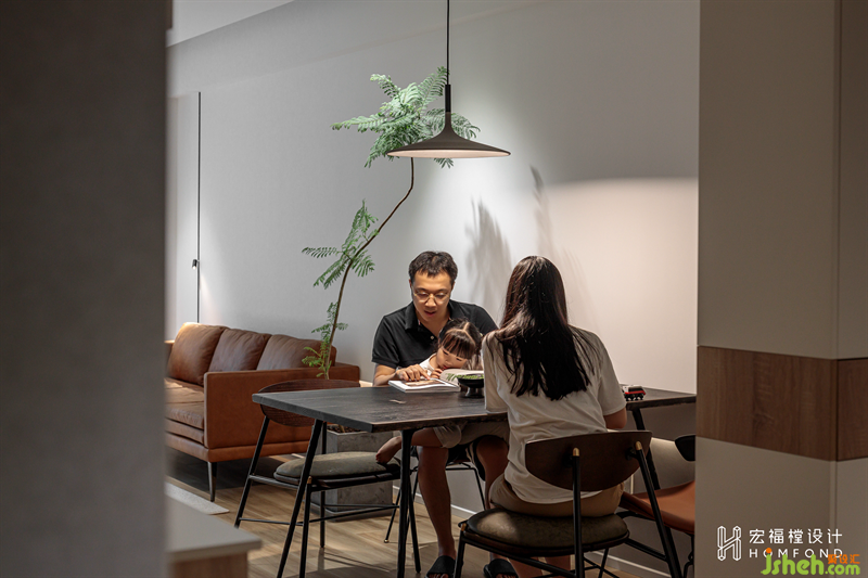 室內(nèi)光線明亮又內(nèi)斂,與空間氛圍融合后產(chǎn)生出適度的溫和感。在見證一家三口的四季日常的同時,家居設(shè)計穩(wěn)穩(wěn)地接住他們在其中的一切活動,凝聚出陪伴的力量。