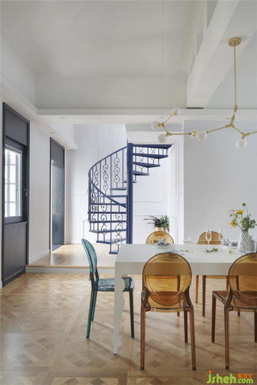 客廳、餐廳、廚房等都是一個個很狹小的空間。設(shè)計師大膽的把多余的墻體全部拆除,別墅裝飾將整個建筑打開,體現(xiàn)了建筑空間感,創(chuàng)造出更靈活的使用機能與生活動線,提高舒適感。使空間與空間有很好的連接,餐廳客廳的空間感迅速提升。