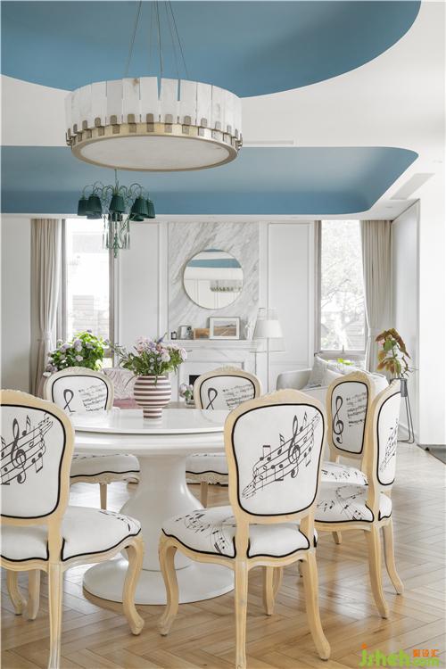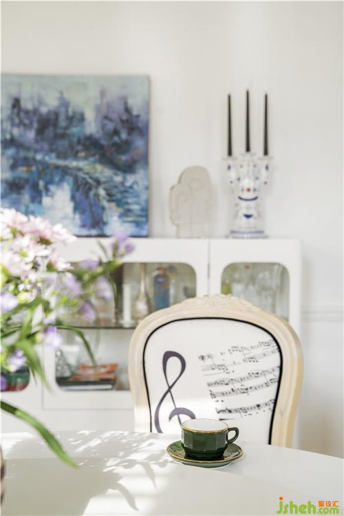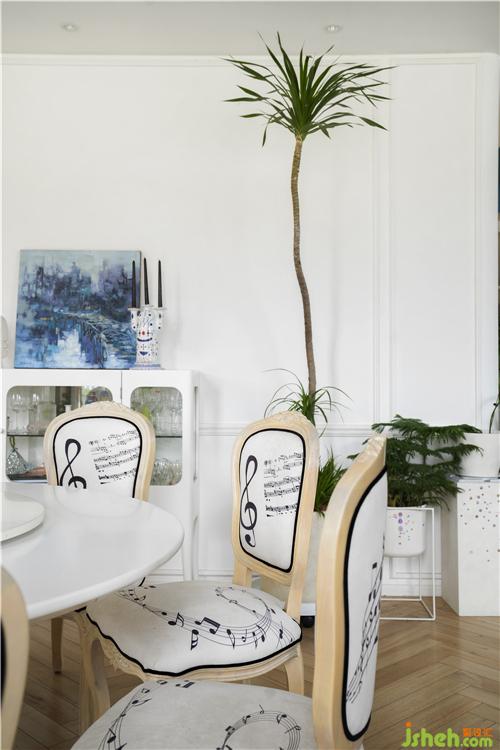 定制餐椅選擇了有著五線譜與音符的個(gè)性面料,保有法式家具浪漫的調(diào)性的同時(shí),也給家里帶來了美妙的韻律感。