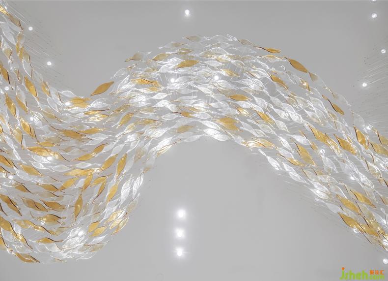 結合對東方藝術及現代美學觀念的具體分析,空間并非單純的將人文因素生硬的穿插在空間中,而是通過色彩調配,軟裝配飾的精心搭配,以極具質感的棉麻、皮質為主,室內設計師營造出一個干凈純粹、自然質樸卻又具有獨特格調和藝術情懷的空間。如同前廳大型藝術水晶吊燈和藝術裝置,在光的巧妙融合下,將水柔情溫雅的形態(tài)刻畫入微,人們步入空間的那刻起,熟悉的氛圍感將會是下一場域的故事開始。