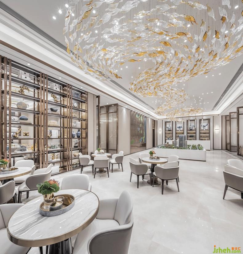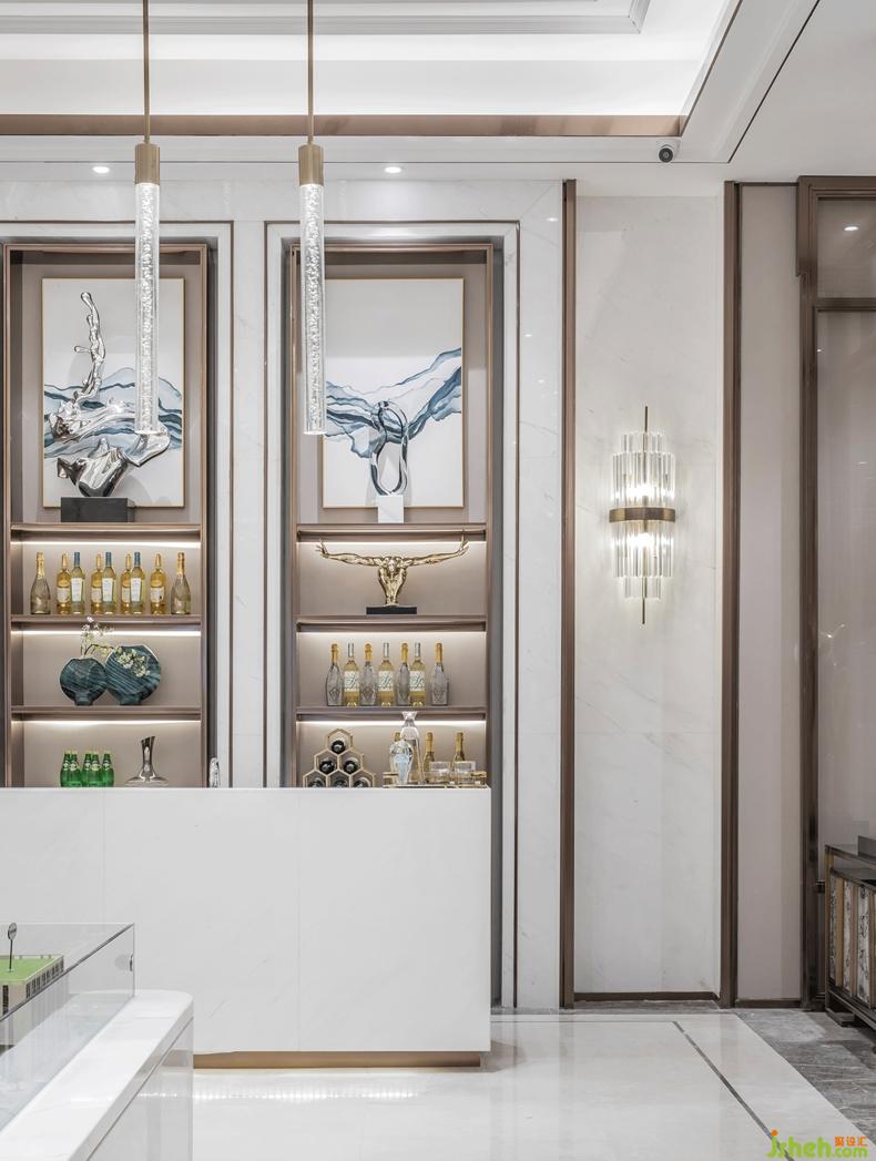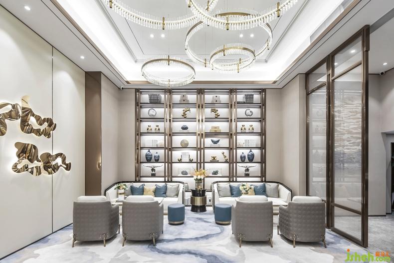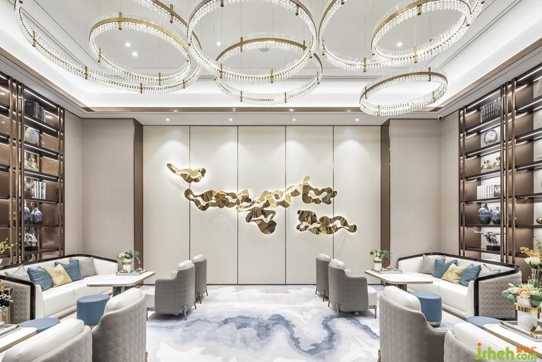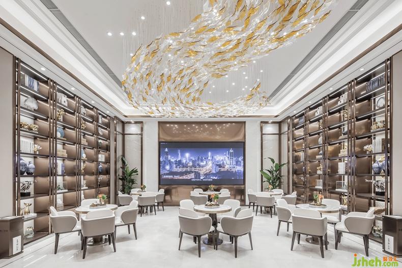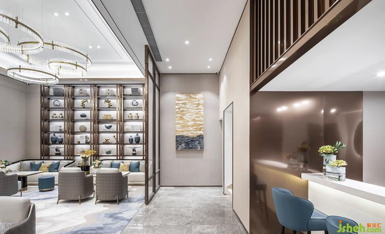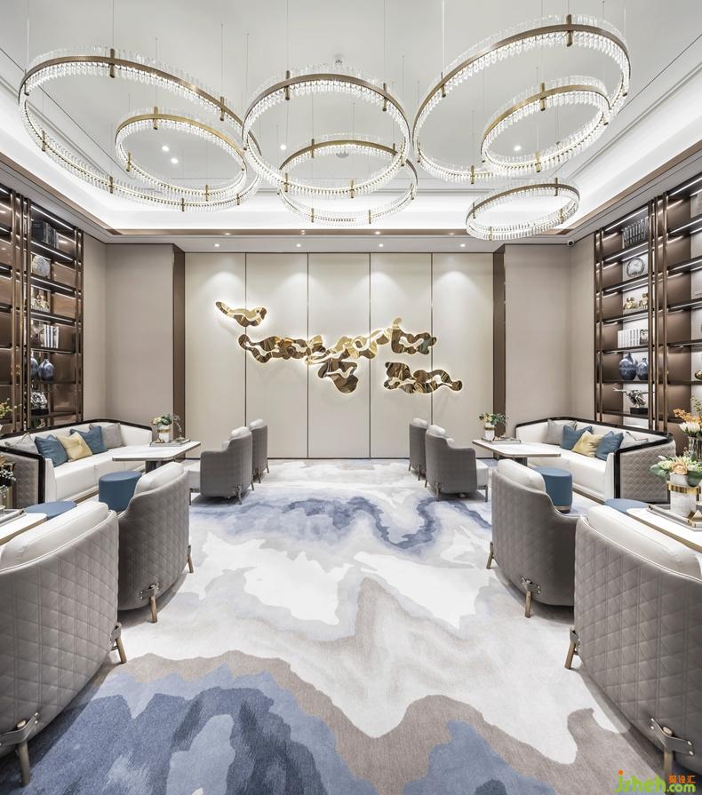 跟隨著“水”元素的蹤跡來(lái)到通透明亮的VIP私人洽談區(qū),以水藍(lán)色為主的優(yōu)雅色調(diào),以極其平緩而雅致紋路溢出了動(dòng)與靜、虛與實(shí)的意蘊(yùn)。人們交談?dòng)诖?,水晶燈低調(diào)而奢華的造型閃爍出淡淡光華,室內(nèi)設(shè)計(jì)師渲染出一個(gè)未來(lái)可期的生活空間。