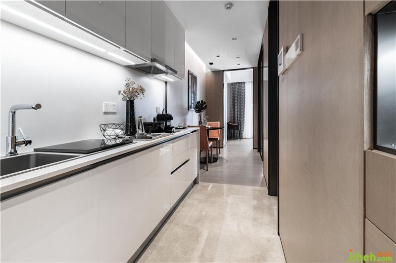 進(jìn)門(mén),穿過(guò)一條狹長(zhǎng)的走廊,遠(yuǎn)遠(yuǎn)瞥見(jiàn)橙色餐椅,一種“山有小口,仿佛若有光”的心境油然而生,行至客廳豁然開(kāi)朗。軟裝設(shè)計(jì)順勢(shì)而為,引導(dǎo)探索內(nèi)心桃花源的空間語(yǔ)境。