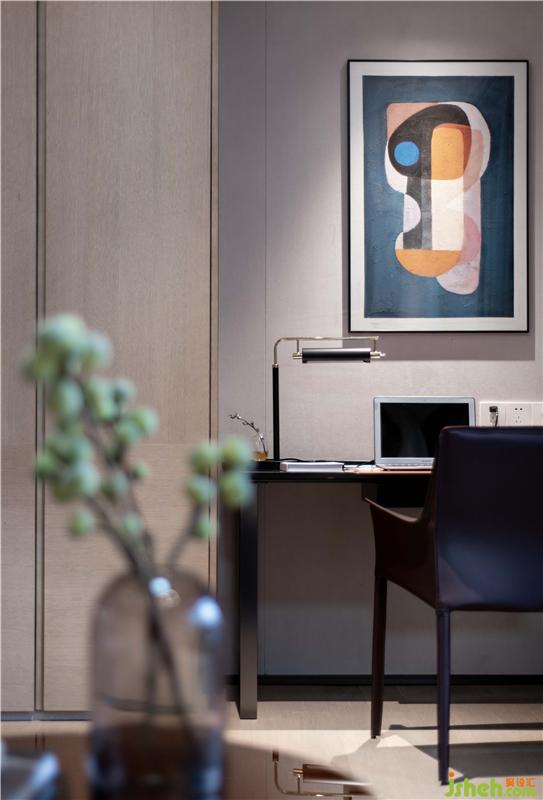 本案設(shè)計(jì)師黃后欽采用浪漫主義手法,運(yùn)用現(xiàn)代寫意的設(shè)計(jì)風(fēng)格,萃取灰咖色為基調(diào),點(diǎn)綴淡素的黛綠,營造空間格調(diào)。