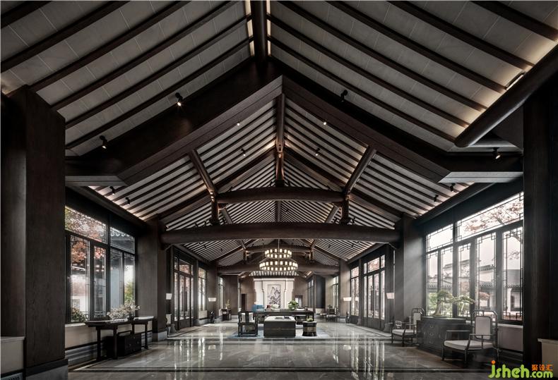 接受本案售樓處設(shè)計(jì)時(shí),深圳洲際設(shè)計(jì)黃后欽率隊(duì)深入黃山市徽州區(qū)考察,以當(dāng)代審美介入徽派古建筑集群,汲取呈坎村、唐模村等建筑“古、雅、美、大”設(shè)計(jì)靈感,以現(xiàn)代手法、現(xiàn)代材質(zhì)表現(xiàn)新中式融合風(fēng)格。