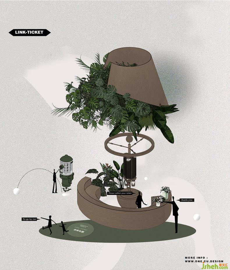 纏繞茂盛的棕櫚葉從,精巧的扭蛋時(shí)光裝置被圍繞式地隱藏其中,持一張未來車票,開始這場(chǎng)空間的未來之旅。