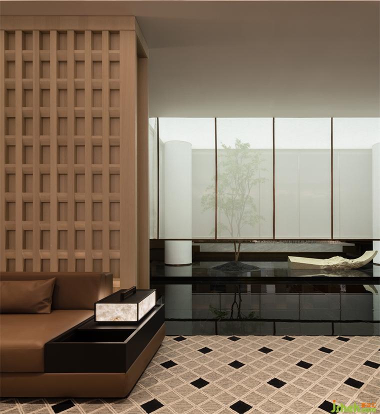 虛實相交、平衡對稱,這種強烈的序列感構(gòu)成了空間秩序嚴謹?shù)拈_端,西安營銷中心設(shè)計經(jīng)由長長的過廊進入,隨著人們視野的打開,空間轉(zhuǎn)換語調(diào),將儀式感神秘的代入氛圍調(diào)和為輕巧的、舒緩的“造園”意趣。