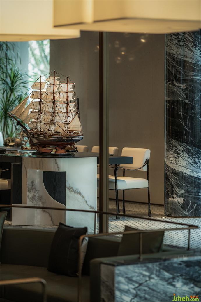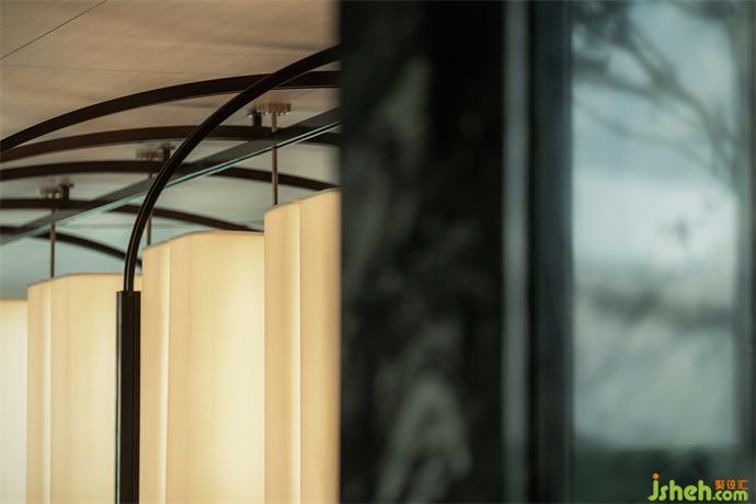 國貿(mào)海嶼原設(shè)計(jì)在此基礎(chǔ)上,軟裝將設(shè)計(jì)表達(dá)的核心,回歸空間主題呼應(yīng)的匹配度與細(xì)膩感,海貝晶瑩通透的燈飾、疊加金屬元素的別致而復(fù)古,以充盈空間細(xì)部的輕盈姿態(tài),呈現(xiàn)延續(xù)如一的視覺感受與空間韻味。