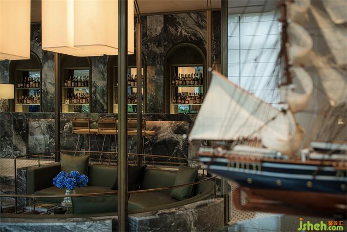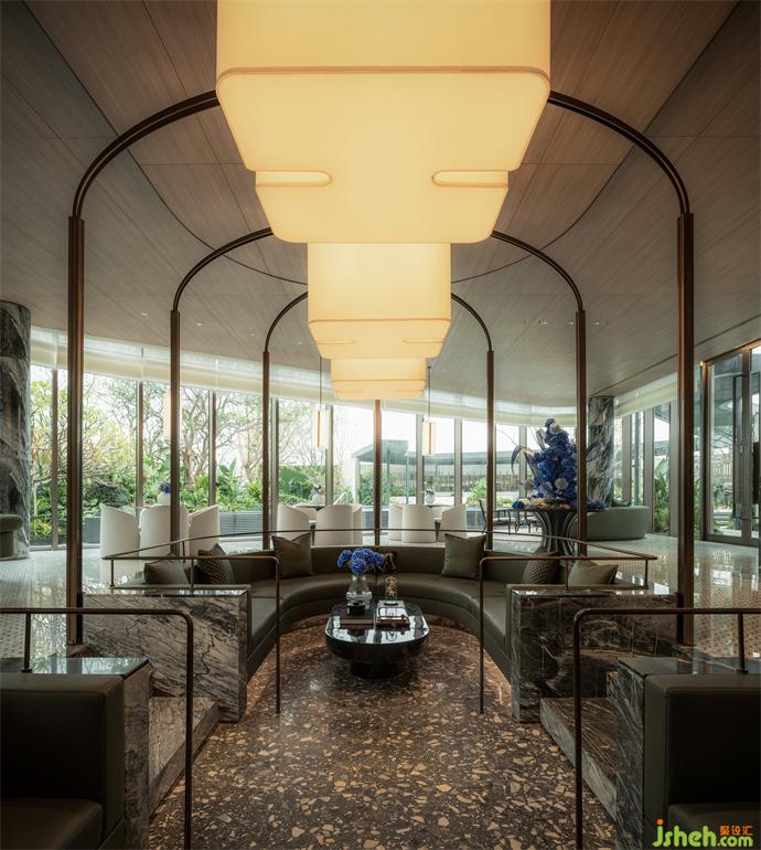 自然感的橄欖綠,在大理石蕩漾如水紋般暈開的紋理里,形成了一種內(nèi)斂而靜謐的情愫,空間于此細(xì)細(xì)流淌開來,并將人們空間探索的感官、心境,全然沉浸,帶入這如森海秘境的空間之旅中。