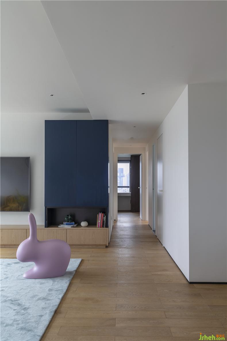 這次的設(shè)計里“借”了很多光,采用大落地窗的形式,讓窗外的好景成為家中天然的裝飾畫。