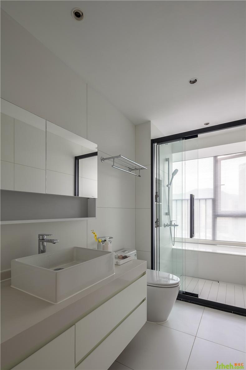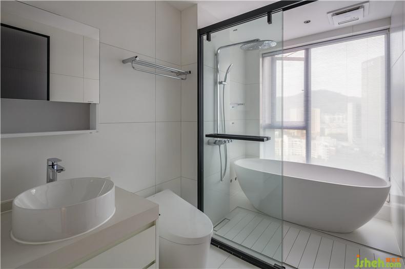 客衛(wèi)和主衛(wèi)都采用白色為主基調(diào)去設(shè)計,干凈清爽。干濕分離的設(shè)計,也讓衛(wèi)生間更加利落。