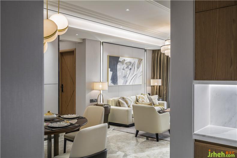 玄關(guān)用深色與鋁合金的搭配凸顯了質(zhì)感,半遮掩的玄關(guān)有著一股中國風(fēng)的韻味。