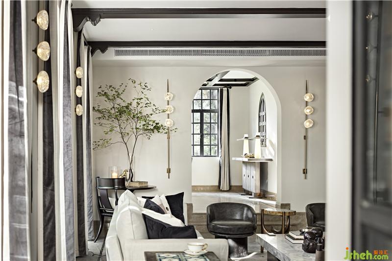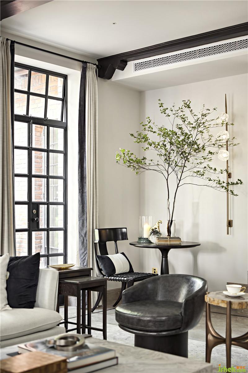 素凈的米白色為空間的主基調(diào),復(fù)古橫梁與老上海窗格將空間輕柔切割,連帶著映入室內(nèi)的光也多了幾分雅致。瓶中綠意與動(dòng)物水晶球擺件為空間注入靈韻,用自然與優(yōu)雅勾勒出一個(gè)原始美麗的自然空間。