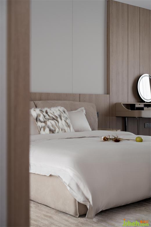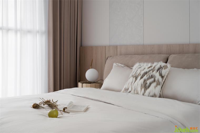 主臥空間充盈著光和寧?kù)o,層次分明的床品織物布置,營(yíng)造出暖意和質(zhì)感。