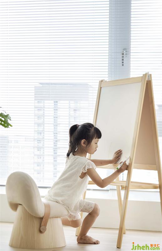 屋主有一個(gè)可愛的女兒,她告訴我,即使人到中年,她在午夜夢回的時(shí)候也是回到童年時(shí)代的家中,童年對于每一個(gè)人來說意義非凡,因此希望她的孩子能有一個(gè)美好的童年環(huán)境,夢中都能是陽光明媚。于是將家中光線景觀最好的南陽臺(tái)整體抬高做成地臺(tái)作為兒童玩樂區(qū)。據(jù)說后來這里也成為了小朋友們最喜歡的地方,專心致志的自娛自樂兩三個(gè)小時(shí)是常態(tài),而大人休息陪伴兩不誤,各得其所。