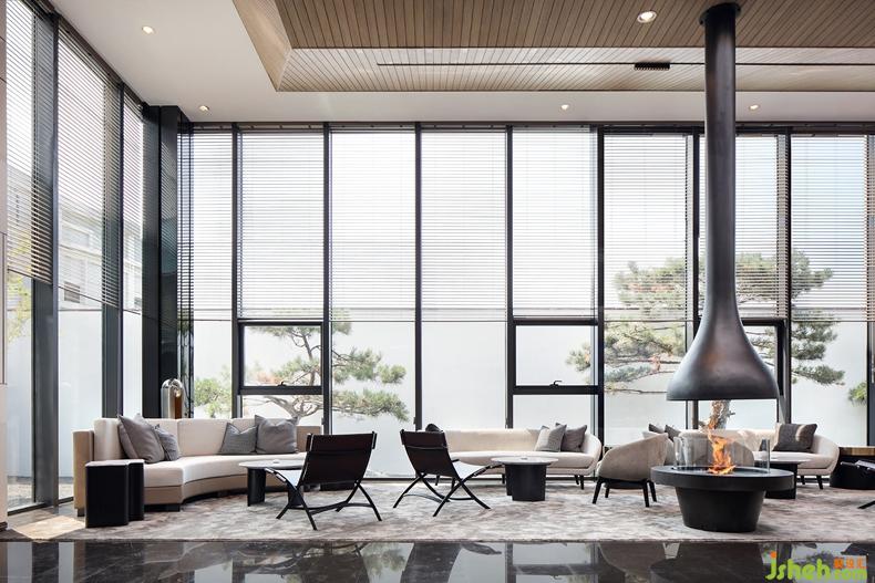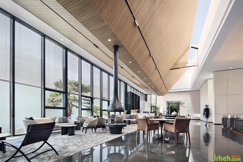 在建筑到室內(nèi)的空間構(gòu)想中,我們采取了北實(shí)南虛的處理手法,室內(nèi)設(shè)計(jì)師北面以實(shí)墻隔斷噪音,南面則引入景觀,忽略室內(nèi)外邊界,穿插內(nèi)外庭院,實(shí)現(xiàn)不斷變化的連接與互動(dòng)。