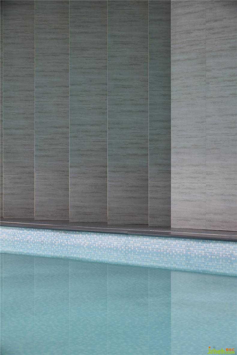 泳池運(yùn)用建筑構(gòu)成的手法,真實(shí)的天光從木色的格柵灑下來,虛實(shí)的結(jié)合,光與線的交錯,嘉興售樓處設(shè)計(jì)使整個空間更加愜意悠然。