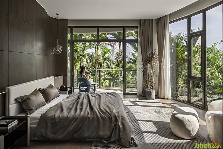主臥、書房等專屬空間設(shè)置于頂層,既強(qiáng)調(diào)了私密性與安全感,別墅裝飾也擁有更加開闊的視野與風(fēng)景。窗外的椰林、安靜的內(nèi)部空間在這里建立起純粹的連接,再復(fù)雜的心緒也將歸于寧靜。