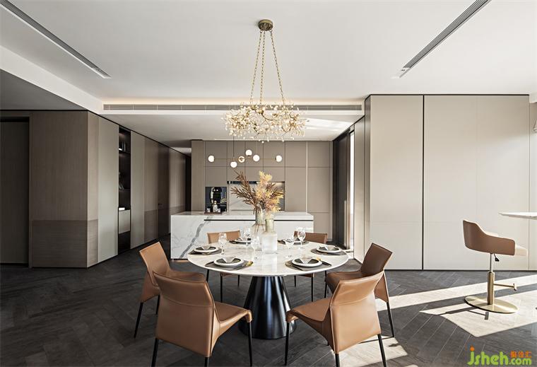 利落的家具線條、無華的飾面、現(xiàn)代時尚的金屬擺件,每一寸細(xì)節(jié)的鋪陳,都展現(xiàn)出生活的美感與張力。純粹的米白與溫暖的咖橙,低調(diào)而內(nèi)斂地烘托著空間氛圍,樣板房設(shè)計營造出從容雅致的生活格調(diào)。我們希望空間呈現(xiàn)的不單單是極具品質(zhì)的沙發(fā)、桌椅,更是一種高貴雅致的生活方式。