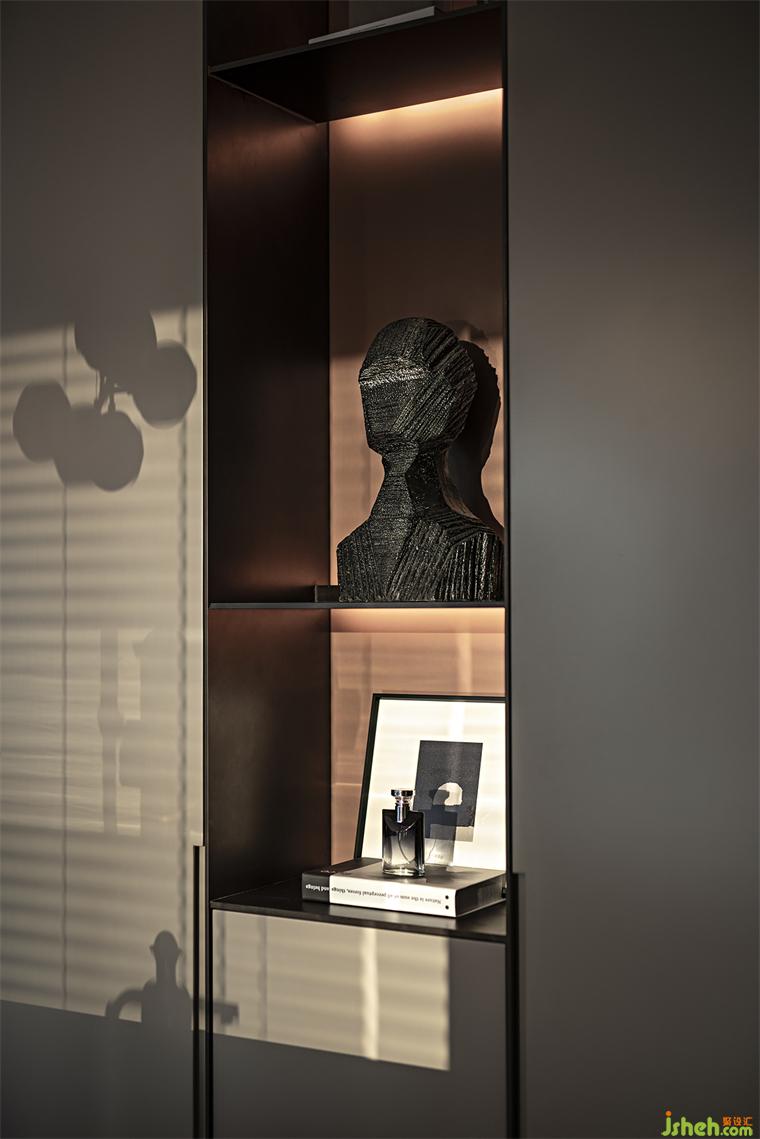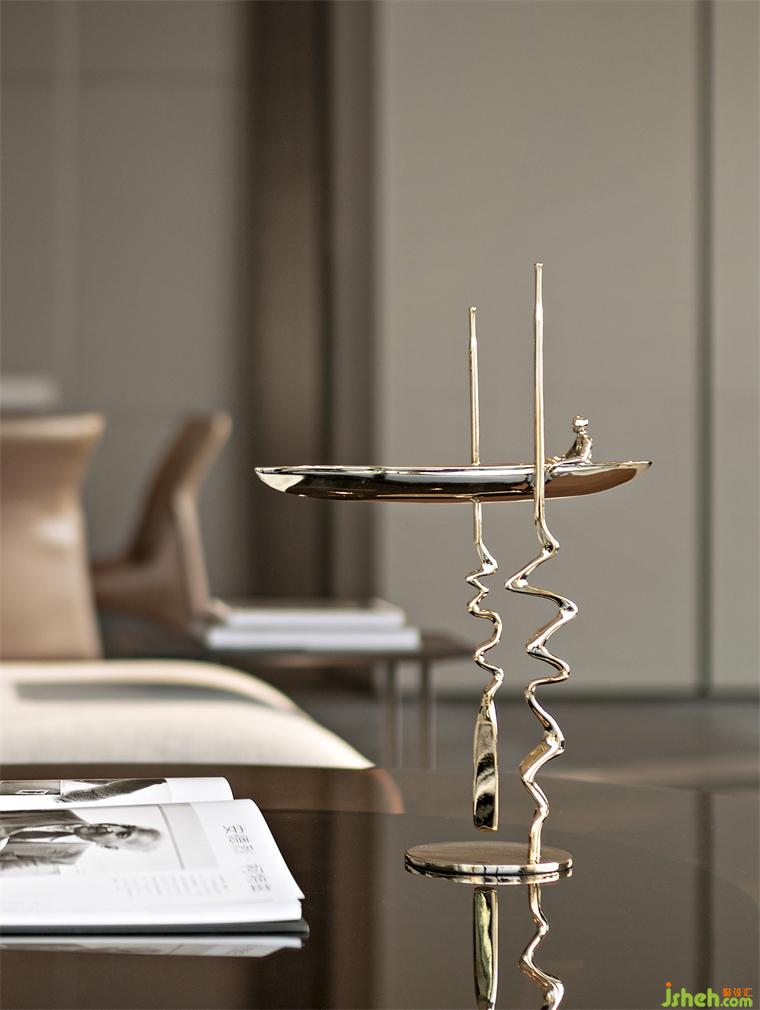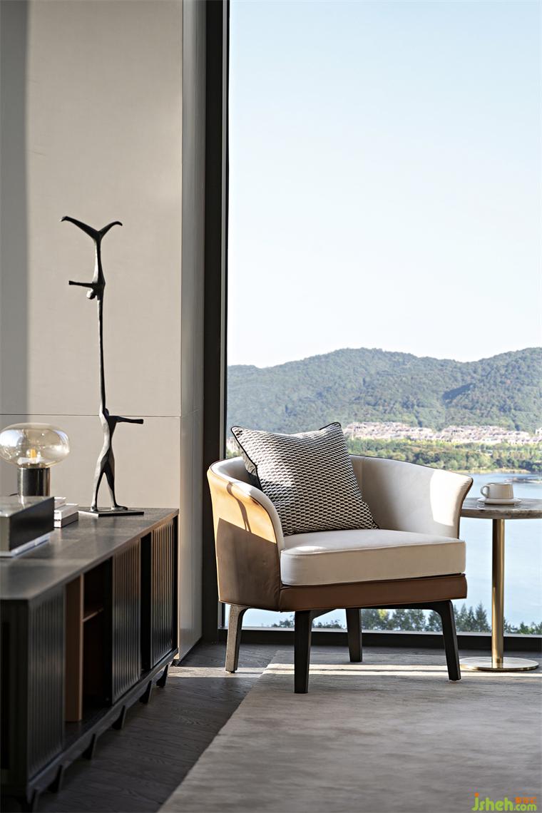 對于頂級圈層而言,藝術(shù)是日常的必須品。窗邊的單人沙發(fā)椅,邊柜上的極簡藝術(shù)擺件,營造出悠然愜意的空間情緒。自然光在墻面、地面、物件上織就“時間”的斑駁,樣板房設(shè)計房間也隨之呈現(xiàn)出動態(tài)之美。