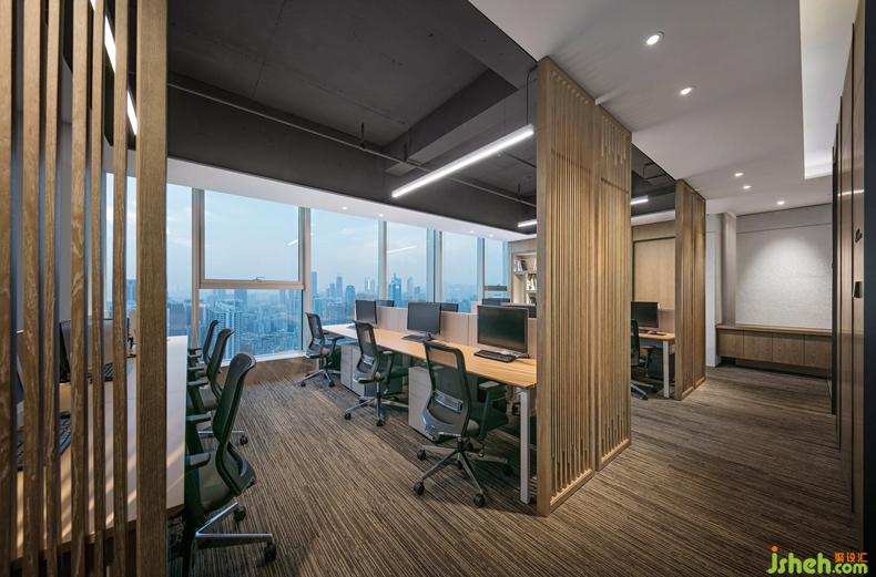 原木色格柵隔斷門虛實掩映,開合之間,透露靈秀。辦公桌利用白色板塊劃分各部門,塑造開放性與私密性,鼓勵員工們在舒適自然的氛圍中研究與討論,從而激發(fā)更多的靈感。