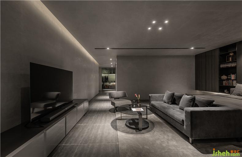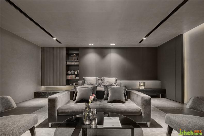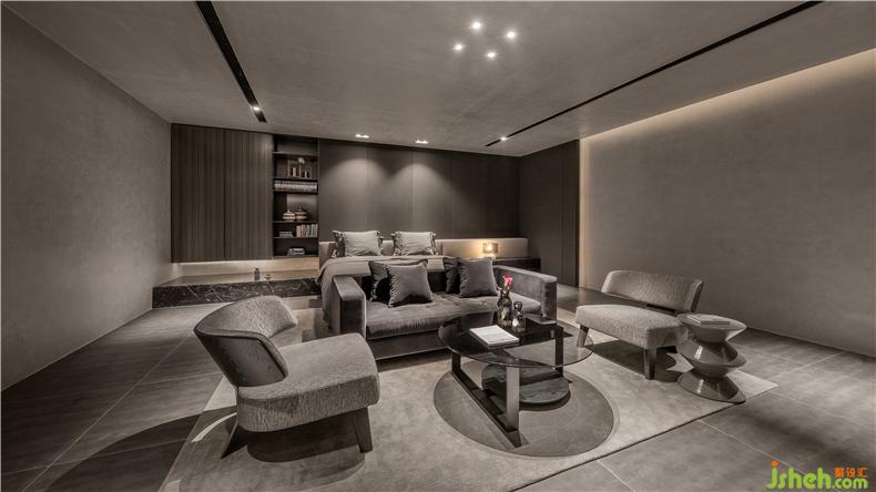 藉由淺灰色瓷磚,灰褐色墻布硬包,沉穩(wěn)、會所設(shè)計原始又兼具現(xiàn)代感混凝土頂面來做空間的深淺變化,以此勾勒簡練線條;絨布材質(zhì)的沙發(fā)、椅,在柔和燈光的襯托下,勾勒出一種安定靜謐、溫柔奢華的空間氛圍。