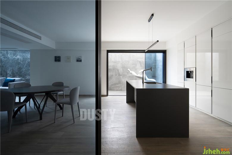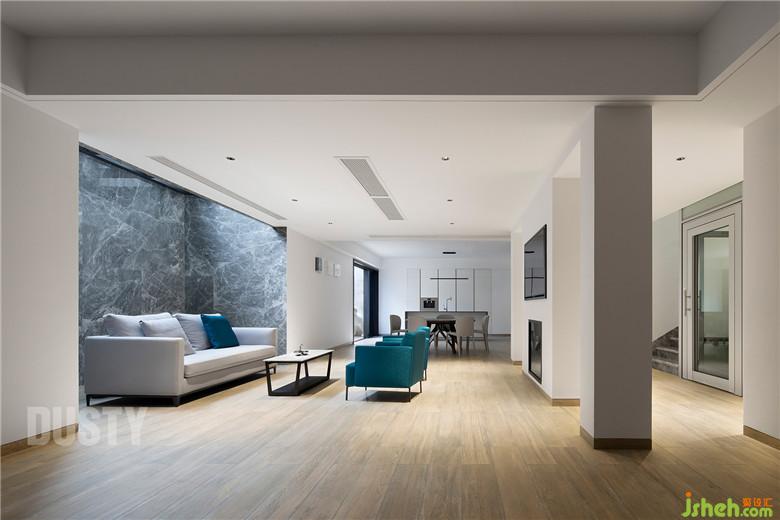 別墅裝飾每一個設計需在滿足功能性的需求上的同時呈現(xiàn)美,又能符合居住者的真實需求。在此設計理念里,我們將原始結構里在一層的餐廚,移置到負一層,使負一層的使用率達到最大化,廚房的空間也變得更為寬敞。色彩上,藍色的加入,與整體的灰白色調(diào)共同營造出輕奢的質(zhì)感。
