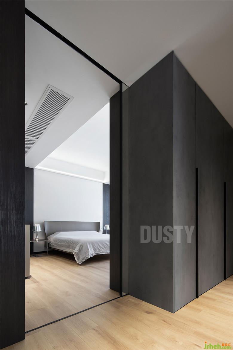在設計主臥時,考慮到居住者對空間私密性和通風的需求,設計了一道有趣的門,關上時,從外面看是一面鏡子,這時整個空間是密閉的,打開時,讓主臥與外面的起居室有了聯(lián)系。
