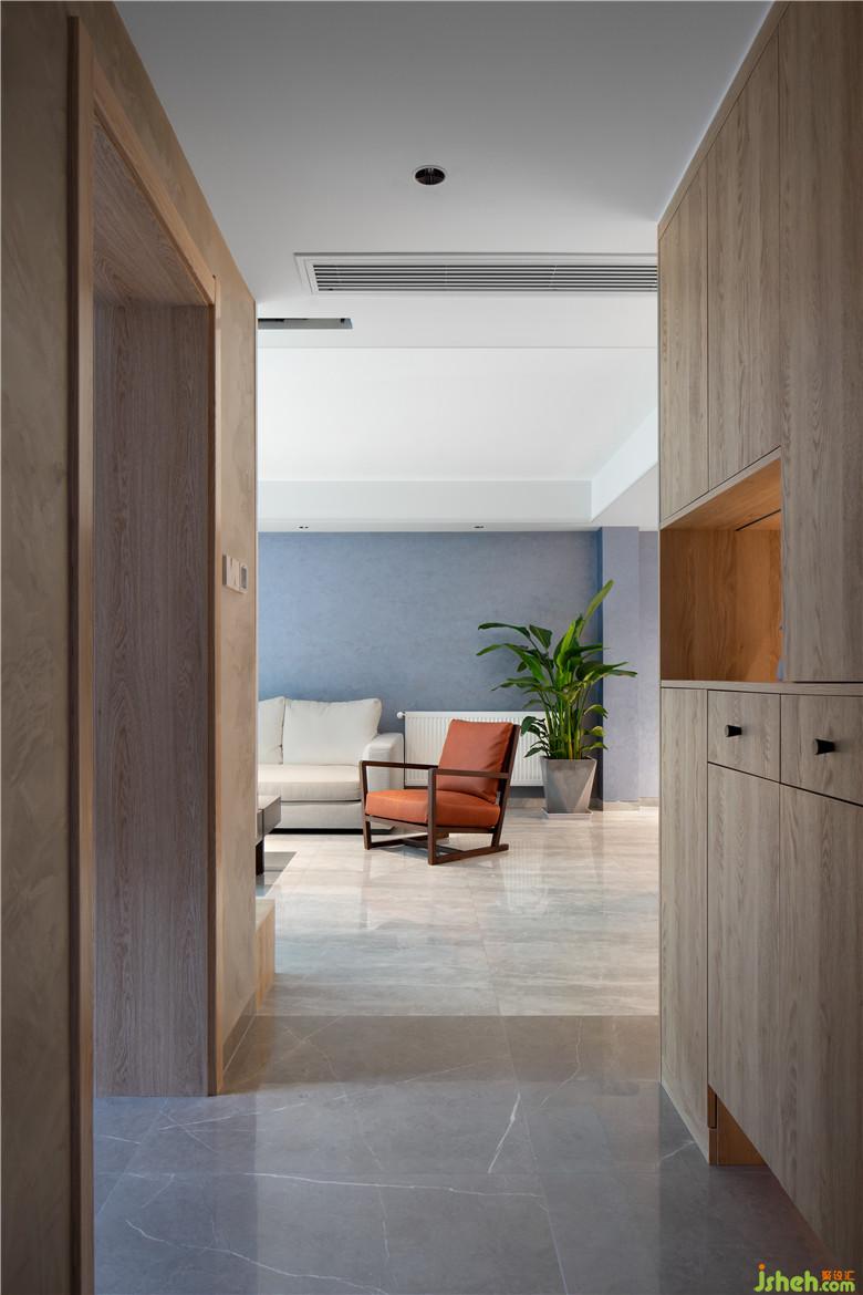 入戶右手邊實(shí)現(xiàn)通頂木質(zhì)柜、便于存放隨手零雜物品、換鞋等進(jìn)出門需求。