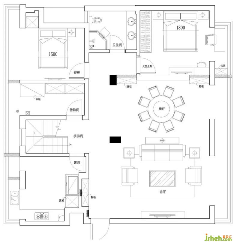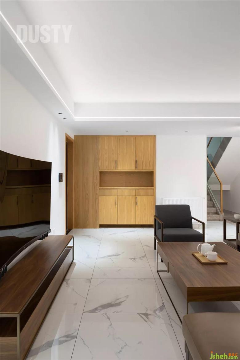 客廳頂上搭出的空間作為起居室兼書房,它們之間的通道設(shè)計為衣帽間區(qū)域,不多占用空間的基礎(chǔ)上,滿足收納功能。