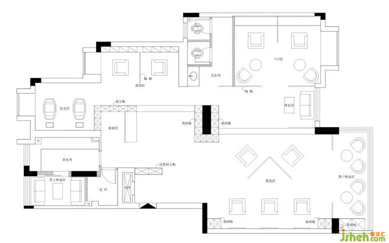 將洗發(fā)區(qū)的位置設(shè)置在空間角落,