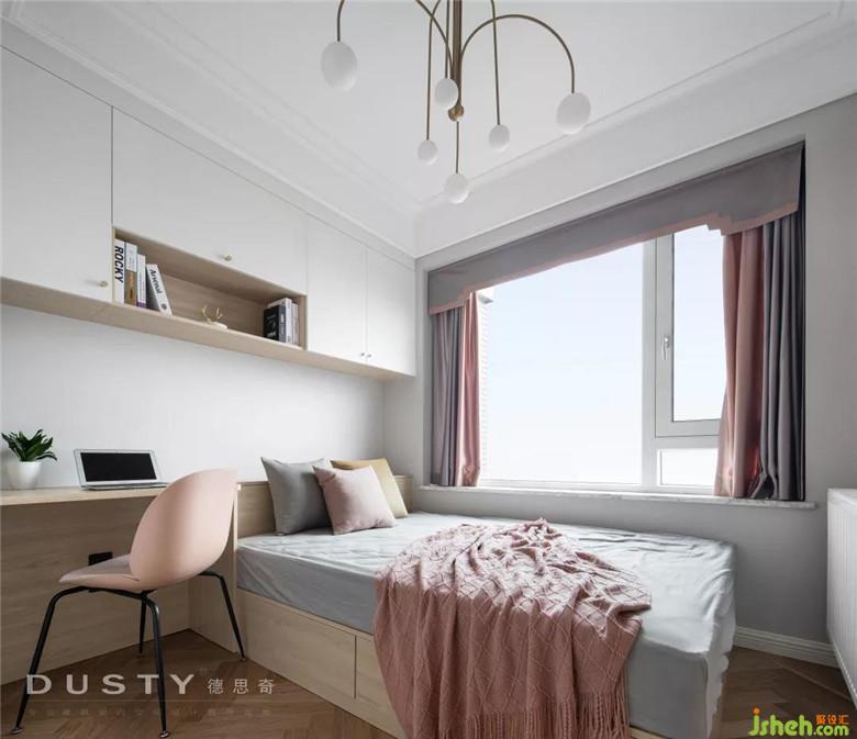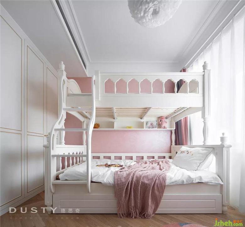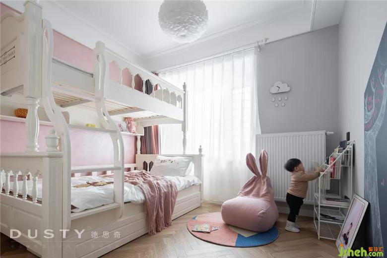 細膩而貼心的愛在那一面粉色的藝術涂料墻,這里是兩個小公主的房間。白色的上下床顯得溫馨而可愛,床對面裝修公司做了一個閱讀繪畫區(qū),希望小公主們養(yǎng)成愛學習的好習慣。