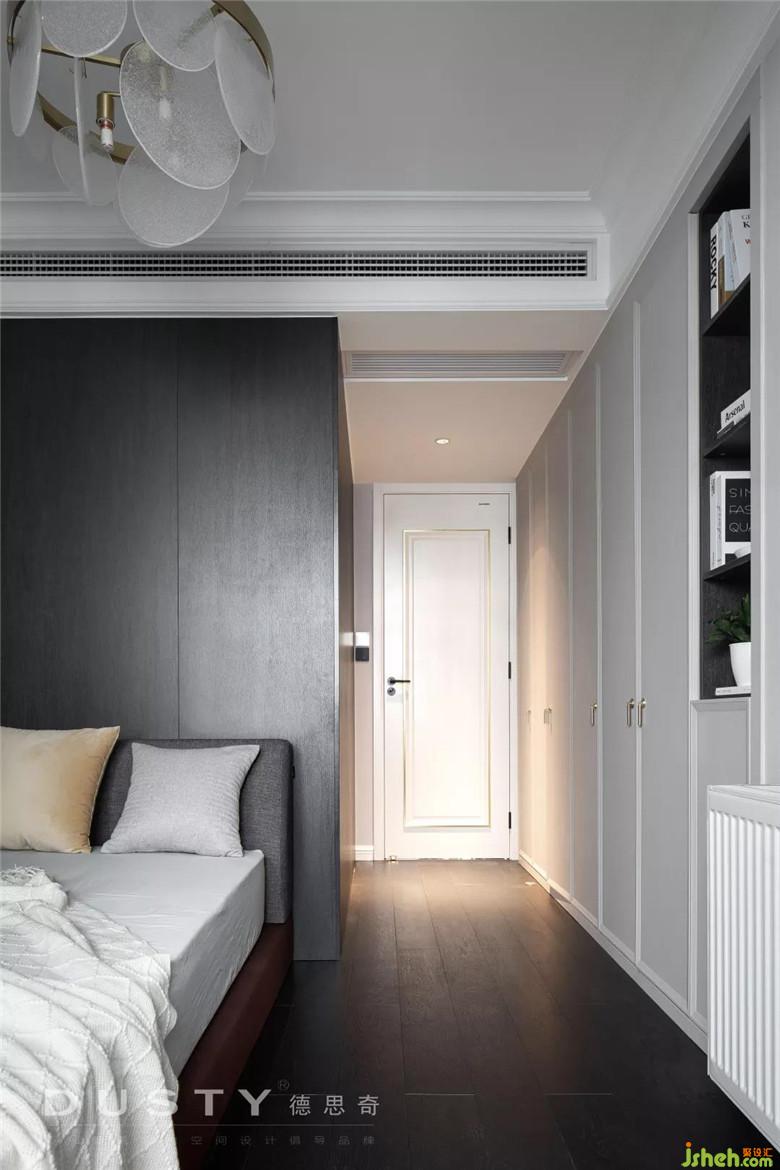 榻榻米的空間留給父母過來住,在這里設置了一個組合柜,讓書桌、床、衣柜、吊柜形成一個整體。裝修公司用經(jīng)典的白色和木色搭配顯得空間溫馨明亮。