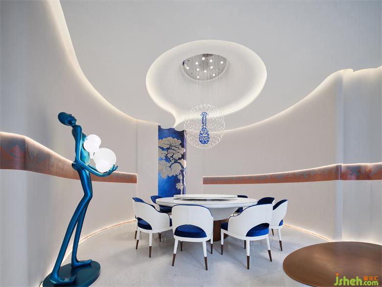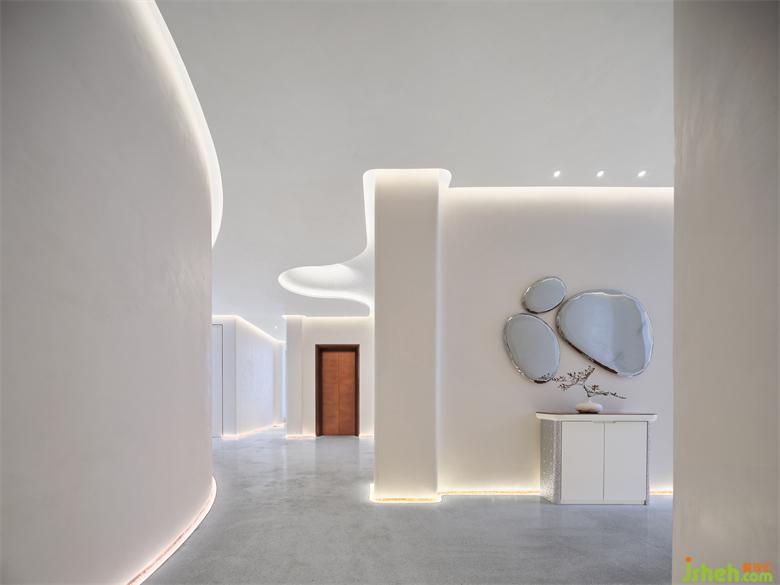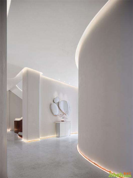 會(huì)所設(shè)計(jì)以整體空間曲線之形態(tài)表達(dá)洋河酒之綿柔,以整體空間白色之純凈表達(dá)洋河酒之淡雅。