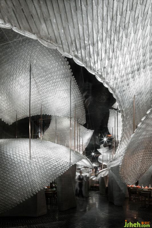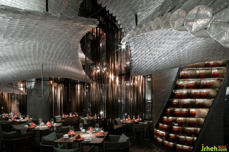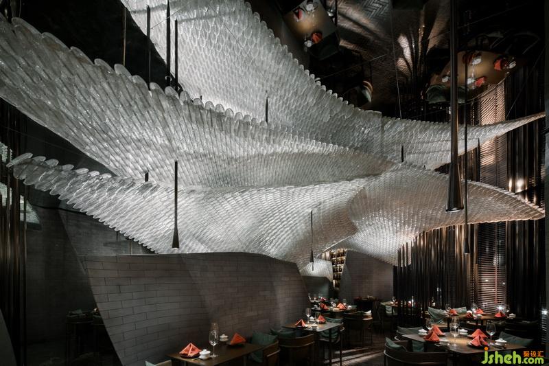 一道不銹鋼磚墻的縫隙;一顆螺絲;一片羽毛的角度;在設計師無數(shù)次同業(yè)主交流中得到啟發(fā)。這間極具戲劇性的餐廳,每一次細節(jié)打磨,都應經(jīng)得起體驗者近距離的把玩。每一處獨立的空間,都是驚艷,就像一道色香味俱全的川菜。讓食客流連其中,精神上的味蕾在大腦綻放,回味無窮。