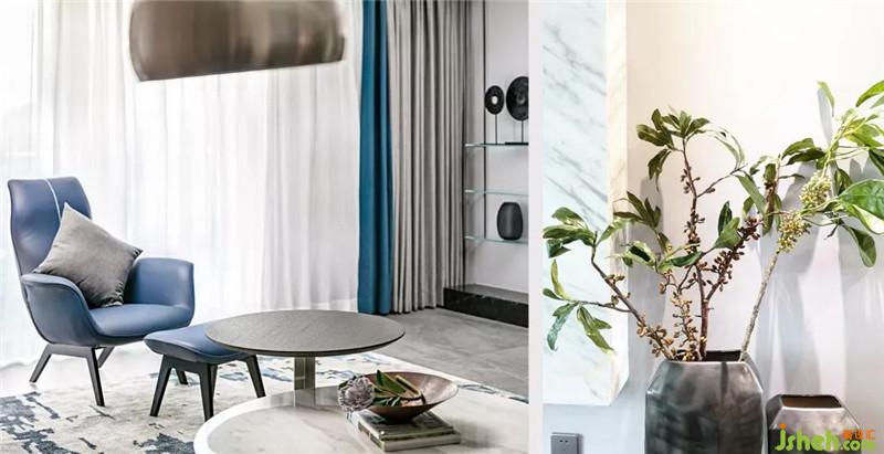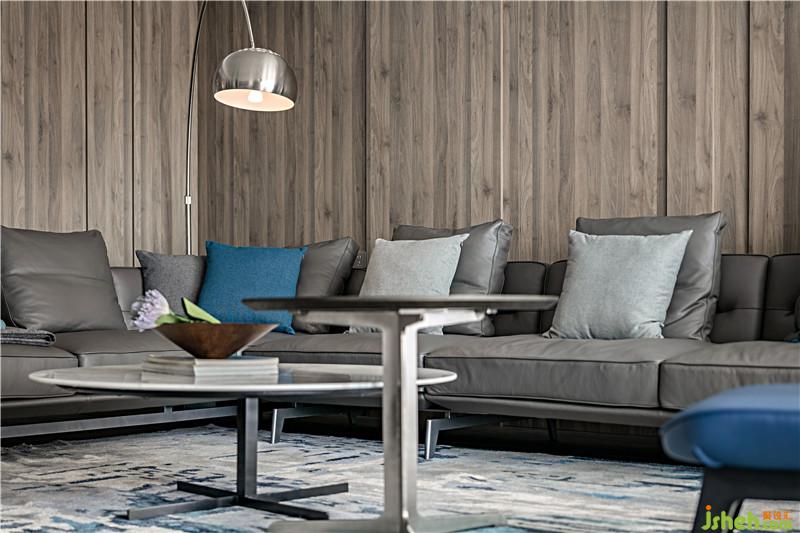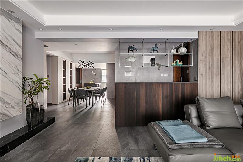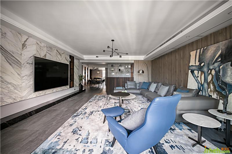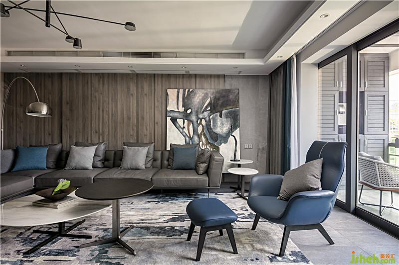 首先利用多層次的灰色度描繪空間的硬朗,海藍(lán)色作點綴,再有光線透過開放式景觀陽臺照射進(jìn)來,整個室內(nèi)空間有著男性的粗獷野性之魅力。深圳裝修公司