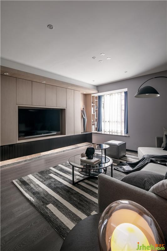 客廳設(shè)計(jì)師用簡潔純粹的設(shè)計(jì)手法,以高級灰沉淀空間的氣質(zhì);溫潤的木色如一股暖流,演繹空間時尚安靜的靈魂。
