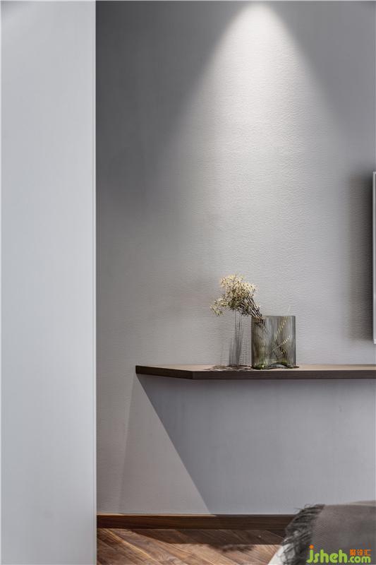 在原始結(jié)構(gòu)中,客臥的實(shí)際面積過小,而且缺少實(shí)用性,因此設(shè)計(jì)將陽(yáng)臺(tái)納入房間,延伸視野格局,并增加了功能性利用。