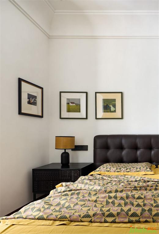 比如一張睡習(xí)慣的床,沉穩(wěn)的黑色、木色,舊房改造以及畫(huà)作、燈光、物品的陳列像現(xiàn)代詩(shī)一樣浪漫,悠閑的魅力、樸實(shí)的平靜在這樣一個(gè)純粹減壓、休息的地方,給人無(wú)盡的安寧感、舒適感。