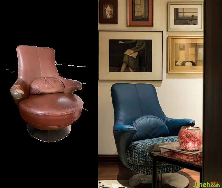 衣柜則是上了層仿原木清漆,保留了封邊色;單人躺椅換掉了原來(lái)破損的皮,材質(zhì)和顏色都做了翻新,這些融合進(jìn)設(shè)計(jì)和空間的小巧思,舊房改造賦予了舊物新的生命,環(huán)保又持續(xù),同時(shí)帶著貼合居住者心意的方式,呈現(xiàn)完美。