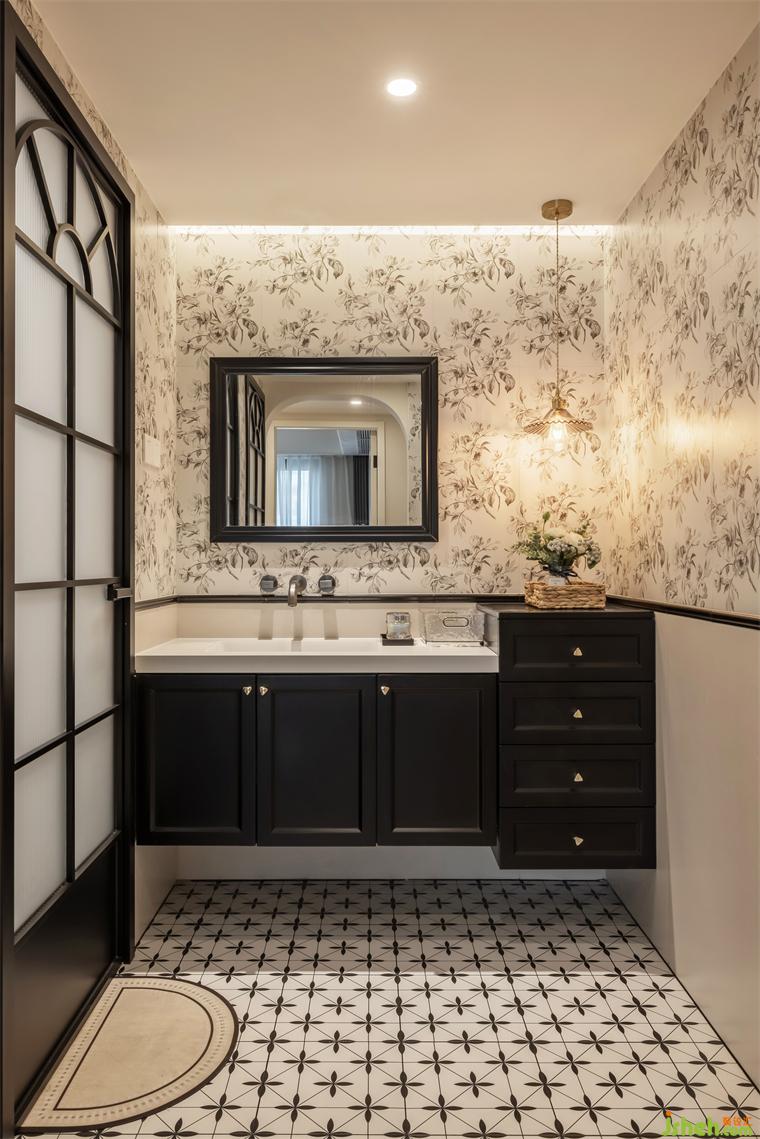 7.衛(wèi)生間依舊實現(xiàn)了干濕分離布局,玻璃磚隔斷劃分出淋浴房,裝修設(shè)計實現(xiàn)功能分區(qū),可以有效避免水汽、潮氣對家電設(shè)備的侵蝕,洗漱區(qū)更是整個房間中心動線的亮點,目光所及,皆是風(fēng)景。